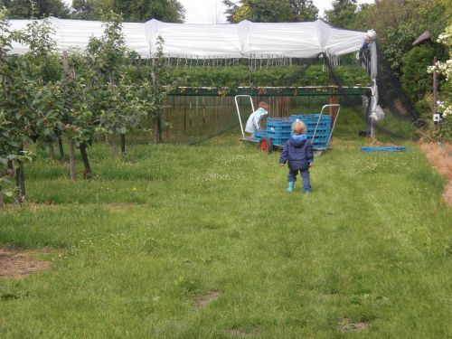 Over het hele stuk is een groot net gelegd – dit om te voorkomen dat de vogels de aarbeien eerder opeten dan wij ze kunnen plukken 😉